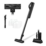 このクリーナーは30,000Paの強力モーターを搭載し、硬いフローリングからカーペットまであらゆる床材を一掃します。ペットの毛・髪の毛・食べカス・細かなホコリまで逃さず吸引。重量は約1.1kgと超軽量設計で、女性や高齢者でも長時間の使用が楽です。さらに40分間の連続運転が可能なので、広い部屋を一気に清掃できます。ソファ・ベッド・壁際の隙間や天井の高い場所も、すきまノズルを使って手軽に清掃でき、ハンディクリーナーとしても活躍します。取り回しの良いデザインと強力な吸引力の両立で、家中の掃除を効率よく快適にします。