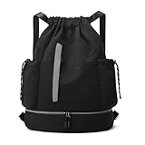 このアマゾンで販売されている大容量スポーツバッグは、縦43cm×横34cm×幅15cmのサイズ感とブラックカラーで、日常の荷物を一度に持ち運ぶのにぴったり。オックスフォード素材を使用しており、軽量で折り畳み可能、さらに防水コーティングが施されているため小雨程度なら気にせず使えます。大きな開口部はロープを引くタイプで荷物の出し入れが楽で、iPadや衣類、サングラス、タオル、本、財布といった普段持ち歩くアイテムをスマートに収納できます。バッグの底には靴を分離して収納できるポケットがあり、清潔さを保ちつつ主バッグと分離できる点も便利。両サイドには傘やペットボトルを入れられるポケットも備えています。使い道は広く、バスケットボール、サッカー、バレーボール、ラグビー、テニス、野球などのスポーツはもちろん、学校の通学、スタジアム観戦、ジム、ビーチなど、さまざまな場面で活躍します。大容量設計と機能性が一体となっており、荷物の整理が楽になり、旅行時のサブバッグとしても重宝します。