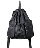 サイズは47×39cm、重量約240gと非常に軽量なのに、容量は約15Lと実用性抜群です。12インチのノートパソコンを含む日用品やスポーツ用品、小物までを余裕をもって収納でき、通勤や学校、ジム、旅行など、さまざまなシーンで活躍します。素材はナイロン製でお手入れが簡単、黒とオフホワイトのカラー選択も魅力。耐久性と汎用性に優れ、簡単に開閉できるドローストリング付きのフロントポケットとキャリーハンドルを備え、荷物の出し入れがスムーズです。軽量ながら丈夫な作りで、日常の使い勝手を最大限に高める設計。複数用途に対応する万能バッグとしておすすめです。